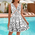 Damklänning Ärmlös – A-Linje Mini – V-Ringning – Blommönster – Spetsdetalj Midja