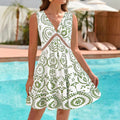 Upptäck damklänningen utan ärmar – A-linje mini – V-ringning – blommönster – spetsdetalj i midjan. Denna smickrande ärmlösa A-linje mini-klänning med elegant V-ringning och livfullt blommönster, accentuerad med en delikat spetsdetalj vid midjan, är perfekt för varje sommartillfälle. Stilfull och bekväm.