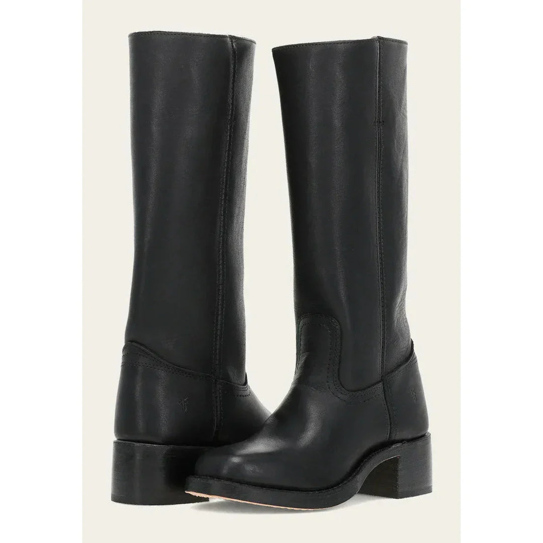 Damer knähöga stövlar – Slätt läder – Klassisk passform – Rund tå – Låg klack