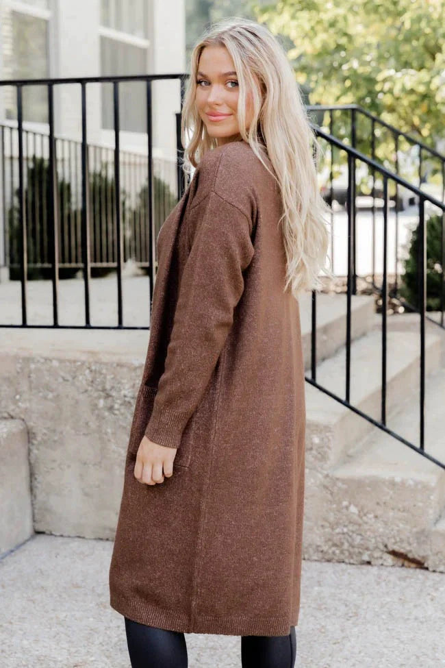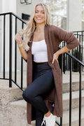 Damer Lång Kofta – Stickad – Öppen Framsida – Avslappnad Passform – Med Fickor