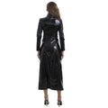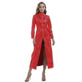 Stel je voor dat je de deur uitgaat en alle aandacht trekt met deze prachtige glanzende leren jas die een onmiskenbare flair toevoegt aan je garderobe. Deze lange jas heeft een strak, hooggesloten ontwerp met een flatterend silhouet dat bij elke gelegenheid past. Voel je van binnen en van buiten fantastisch in dit onmisbare statement piece.