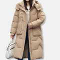 Denna långa damjacka erbjuder en oversized, rak passform och är fodrad för extra värme. Försedd med en hög krage med huva för optimal täckning.