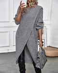 Ontdek de Pullover Gebreide Wol met Asymmetrisch Wrap van Amstel-Mode; een oversized, stijlvolle dames pullover van gebreide wol met een uniek asymmetrisch design. Perfect voor comfort en warmte, deze lange gebreide trui is een veelzijdige, trendy toevoeging aan elke garderobe, ideaal voor casual en chique looks.