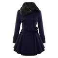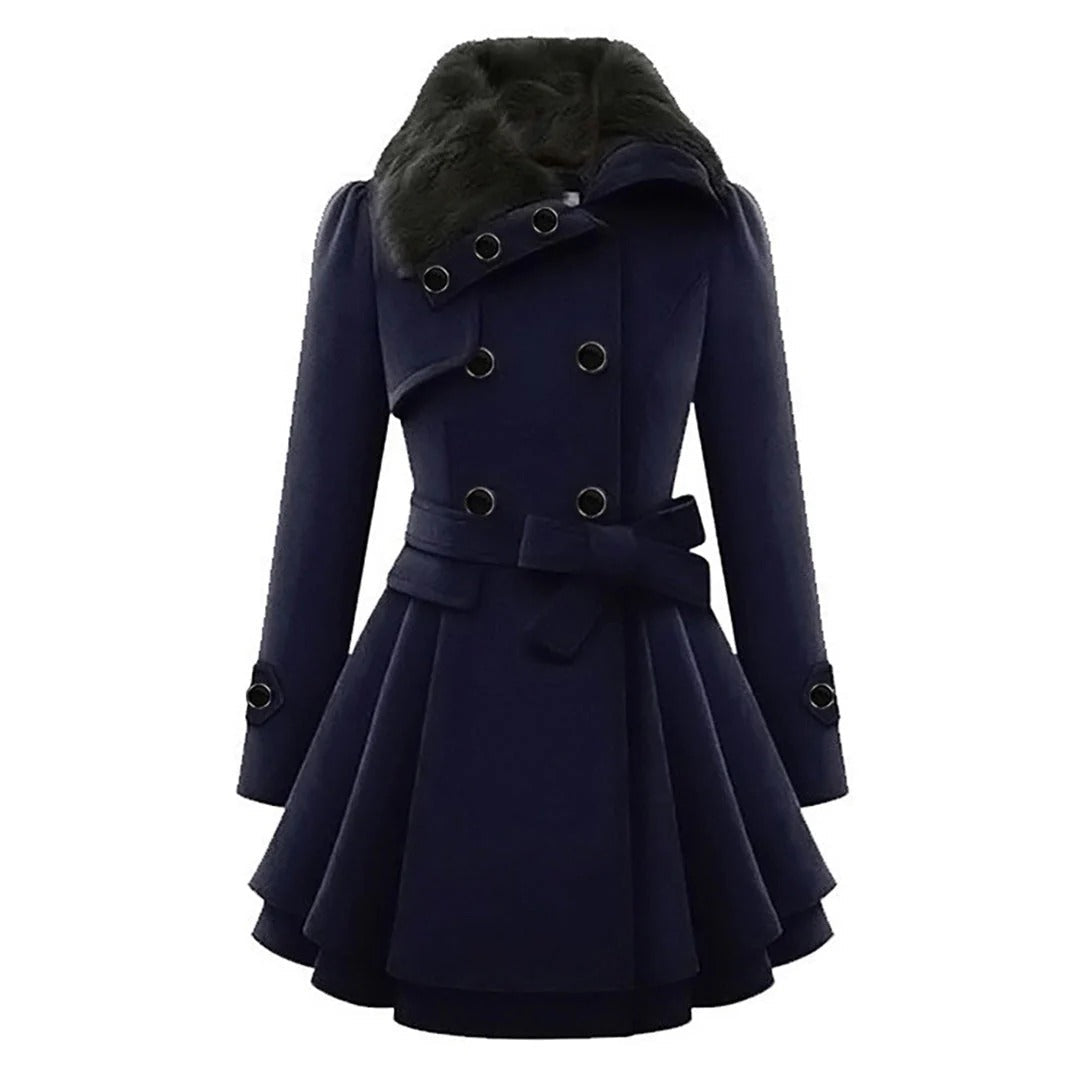 Damkappa – Figursydd Modell – Utsvängd Kjol – Ull Look – Dubbel Rad Knappar – Pälskrage