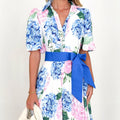 Damer Maxi Klänning – A-linje Passform – Korta Ärmar – Knäppning – Blommönster – Midjeskärp