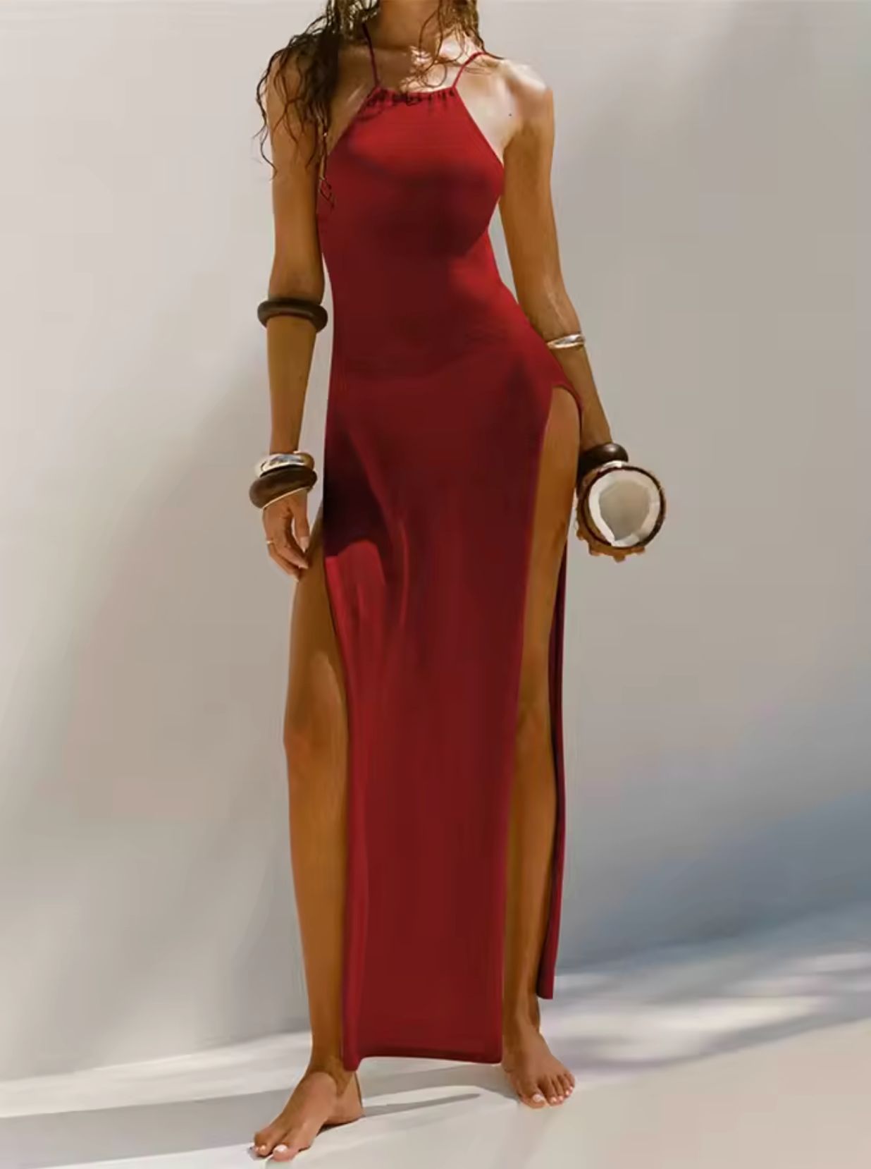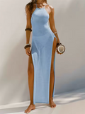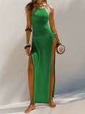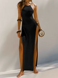 Dam Maxi Klänning - Halterneck - Höga Sidoslitsar - Lätt Elegant Passform