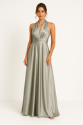 Damernas maxi-klänning – Satin – A-linje – Halterneck – Öppen rygg med rosett – V-ringning. Utstråla elegans med denna satinklänning i maxilängd. A-linjen, halternecken och den öppna ryggen med rosett skapar en hänförande look, perfekt för speciella tillfällen.