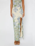 - Design: Axelbandslös med hög slits och blommönster.