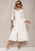 Damer Midi Klänning – Broderie Anglaise – Avslappnad Passform – Skärp – Knappstängning