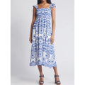 Dames Midi Jurk – Katoen – Ruches Mouw – Vierkante Hals – A-lijn Losse Pasvorm