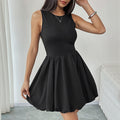 Damer Mini Klänning – Ärmlös Åtsittande Topp – A-Linje Kjol – Bubble Zoom – Rund Hals