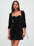 Damer Mini Klänning – Sammet Slim Fit – Puffärmar – Hjärtformad Halsringning – Aftonkläder