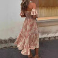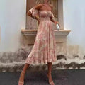 Damer Off-Shoulder Klänning – Smocktopp – Volangärmar – Flerlagers Midi Kjol