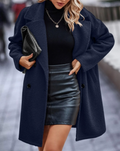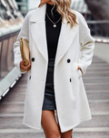 Damer Överrock – Ull Look – Avslappnad Passform – Dubbelknäppt – Knälång – Breda Revers