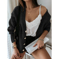 Damer Oversized Jacka – Ullmix – V-Ringning – Knäppning – Ribbstickade Kanter