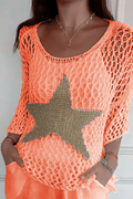 - Ontwerp: Opengehaakt, relaxed fit, ronde hals, met opvallend sterdetail