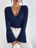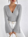Pullover Top met Diepe V-Hals en Geribd Breisel
