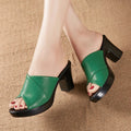 Damsandaler med klack – Läderkorsremmar – Öppen tå – Klossklack bekväm