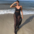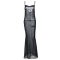 Dam Slipklänning – Slim Passform – Transparent Mesh – Spagettiband – Full Längd – Prickigt Mönster
