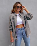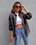 - Design: Oversized passform med fransiga detaljer, knappstängning och bröstfickor.