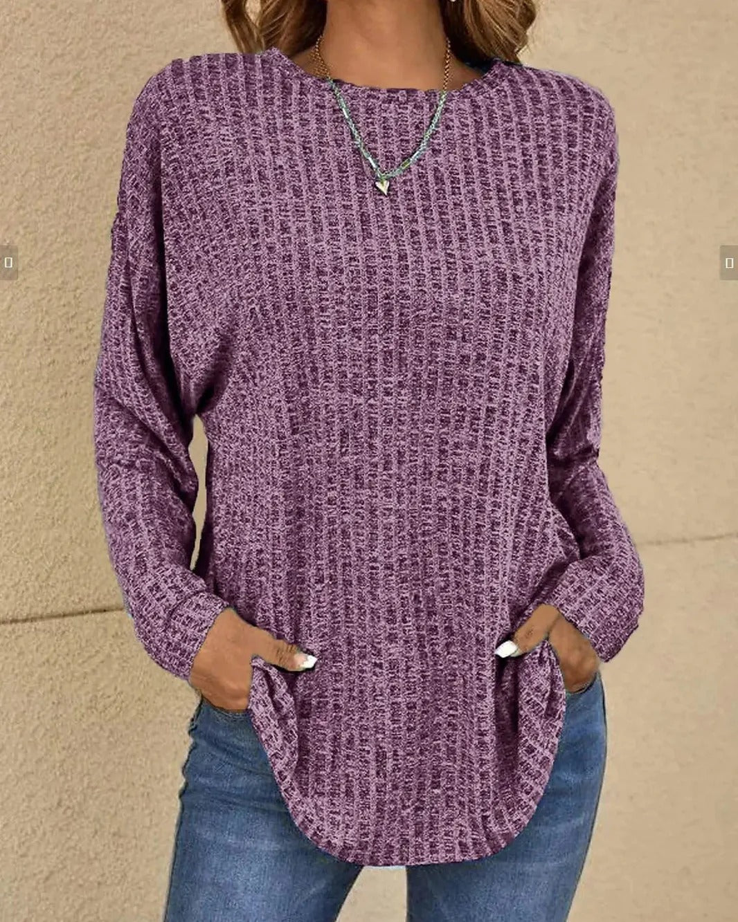 Dit gebreide sweatshirt voor dames heeft een losse pasvorm en een comfortabel silhouet. Het ontwerp wordt gecompleteerd met een ronde zoom.