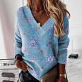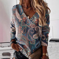 Dam Sweatshirt – Lös Modell – V-Ringning – Paisley Tryck – Långa Ärmar Bekväm