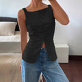 Dames Tanktop – Slim Fit – Geribde Stof – Voornaad – Splitzoom – Mouwloos van Amstel-Mode. Deze mouwloze tanktop met slanke pasvorm, geribde stof en splitzoom biedt comfort en stijl. De voornaad detail accentueert de look. Perfect voor elke dag!