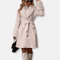 Dam trenchcoat – Skräddarsydd passform – Ullmix – Pälskrage och pälsmanschetter – Mellanlång med bälte