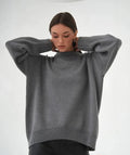 Deze fijngebreide damestrui heeft een oversized pasvorm en een klassieke ronde hals.