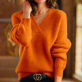 Deze fijngebreide damestrui met V-hals en lange mouwen biedt een relaxte pasvorm voor dagelijks comfort.