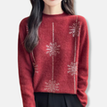 Dam Tröja - Borstad Trikå - Avslappnad Passform - Ribbad Polokrage Med Paljetter