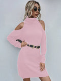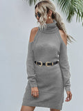 Dam Tröjklänning – Slim Fit – Polotröja – Ribbad Tyg – Öppna Axlar – Med Skärp