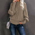 Dam Tröja – Lös Passform – Kabelstickad – Halv Polokrage – Lång Ärm – Ribbmudd