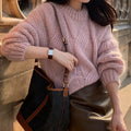 Damtröja – Oversized Passform – Ullstickad – Kabelmönster – Långa Ärmar