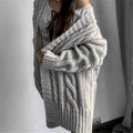 - Ontwerp: Kabelbreisel, V-hals, oversized pasvorm, lange mouwen