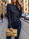 - Ontwerp: Regular fit, puffmouwen, ronde hals