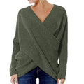 - Ontwerp: Relaxed fit, crossover V-hals, geribd breisel, lange mouwen