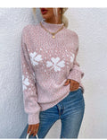 Damtröja – Ullstickad – Relaxed Passform – Hög Hals – Långa Ärmar Blommönster