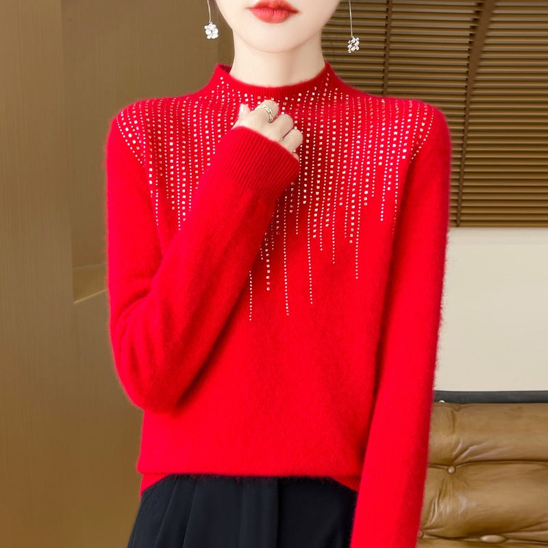 Ontdek de Trui Wollen met Hoge Hals en Ruitpatroon van Amstel-Mode. Deze dames trui biedt een warme, comfortabele losse pasvorm en een chique ruitpatroon met hoge hals en lange mouwen. Perfect voor stijlvolle en koude dagen.
