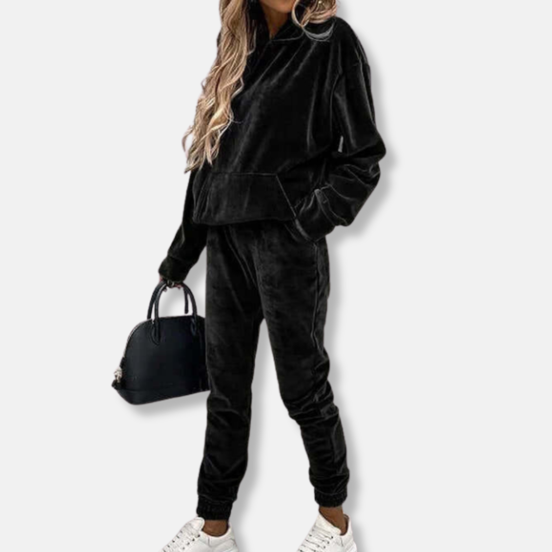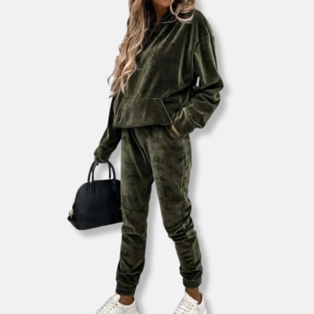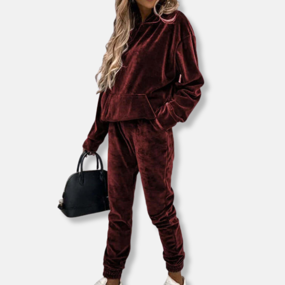 Damer Tvådelat Set - Sammet - Avslappnad Passform - Huva