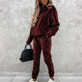 Deze tweedelige set voor dames, vervaardigd uit fluweel met een relaxte pasvorm, biedt een gecoördineerde look voor comfortabele momenten.