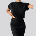 - Ontwerp: Gecoördineerde set met een relaxte top en een aansluitende rok.