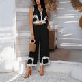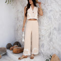 Damer Tvådelat Set – Ärmlös Croptopp & Hög Midja Vida Byxor – Spetsdetalj
