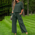 Damer Tvådelat Set – Rymlig Passform – Bomull Look – Topp med Korta Ärmar – Vida Byxor