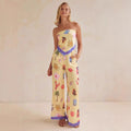 Damer Tvådelad Set – Axelbandslös Satäng Topp – Vida Ben Byxor – Elastisk Midja – Tryckmönster