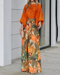 - Design: Vida byxor, batwing-blus med botaniskt tryck