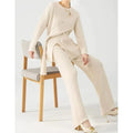 Damer Tvådelat Set – Ribbstickat Mönster – Ledig Passform – Vida Byxor – Asymmetrisk Detalj