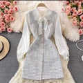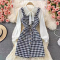Damer Tvådelat Set – Tweed Hängselklänning – Rosettblus – Lång Ärm Elegant Passform