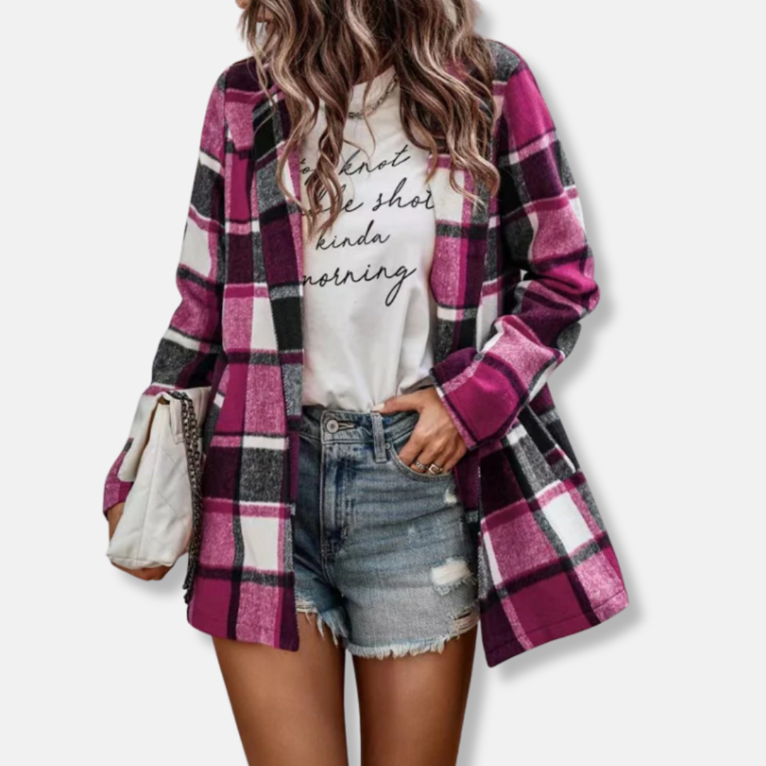 - Design: Oversized passform, rutmönster, öppen framkant, långa ärmar