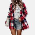 Damer Kofta Jacka – Oversized Passform – Ull Look – Rutmönster – Långa Ärmar – Öppen Front